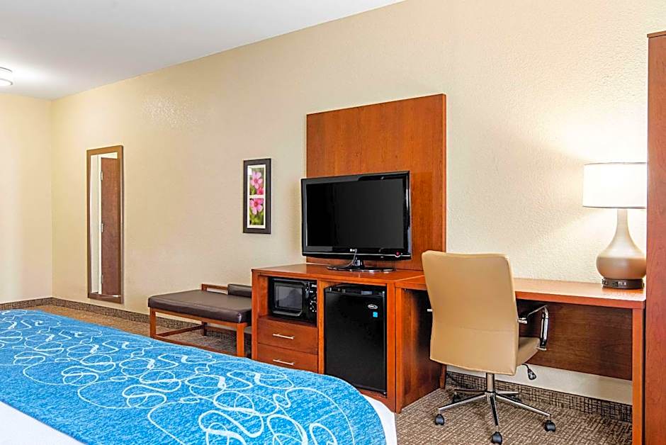 This suite features a tea and coffee maker, a seating area and a TV with cable channels.